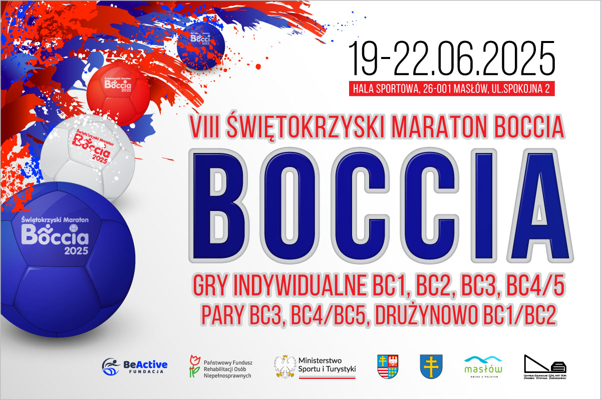 Projekt dedykowany jest do 60 sportowców z dużymi niepełnosprawnościami wspieranych przez 30 rodziców/opiekunów oraz 10 wolontariuszy. W dniach 19-22.06.2025 zorganizujemy w Masłowie Ogólnopolskie zawody bocci. Zawodnicy będą rywalizowali w rozgrywkach indywidualnych (BC1, BC2, BC3, BC4, BC5) oraz w parach i drużynach integracyjnych. Wszystkim zawodnikom, opiekunom i wolontariuszom zapewniamy wyżywienie i napoje a zawodnikom, opiekunom i sędziom przyjezdnym noclegi w czasie zawodów.Zwycięzcy otrzymają trofea sportowe a wszyscy zawodnicy nagrody pamiątkowe.